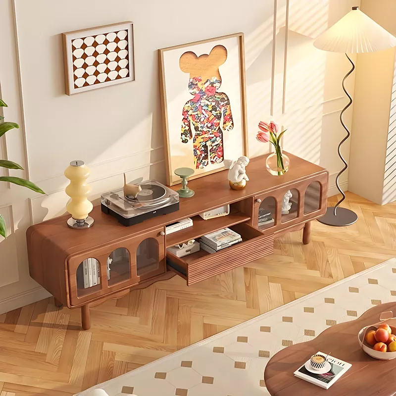 टीवी स्टैंड के रूप में काम करने के अलावा, नॉर्डिक स्टाइल वुडन टीवी स्टैंड में कई भंडारण स्थान शामिल हैं जैसे खुली अलमारियाँ और संलग्न दराज, जो विभिन्न भंडारण आवश्यकताओं को पूरा करते हैं। खुली अलमारियाँ दृश्य-श्रव्य उपकरण, पुस्तकों या सजावट के लिए आदर्श होती हैं, जबकि बंद दराजों में रिमोट कंट्रोल, पत्रिकाएँ और अन्य छोटी वस्तुओं को बड़े करीने से रखा जाता है, जिससे रहने की जगह साफ-सुथरी रहती है। इसके अतिरिक्त, पीछे की ओर केबल प्रबंधन छेद व्यवस्थित तार व्यवस्था की सुविधा प्रदान करते हैं, जिससे अव्यवस्था को रोका जा सकता है।